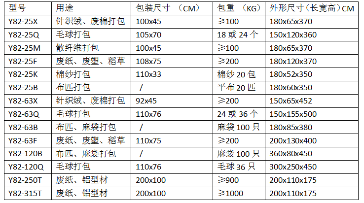 ①打包壓力從3噸至315噸,規(guī)格齊全;